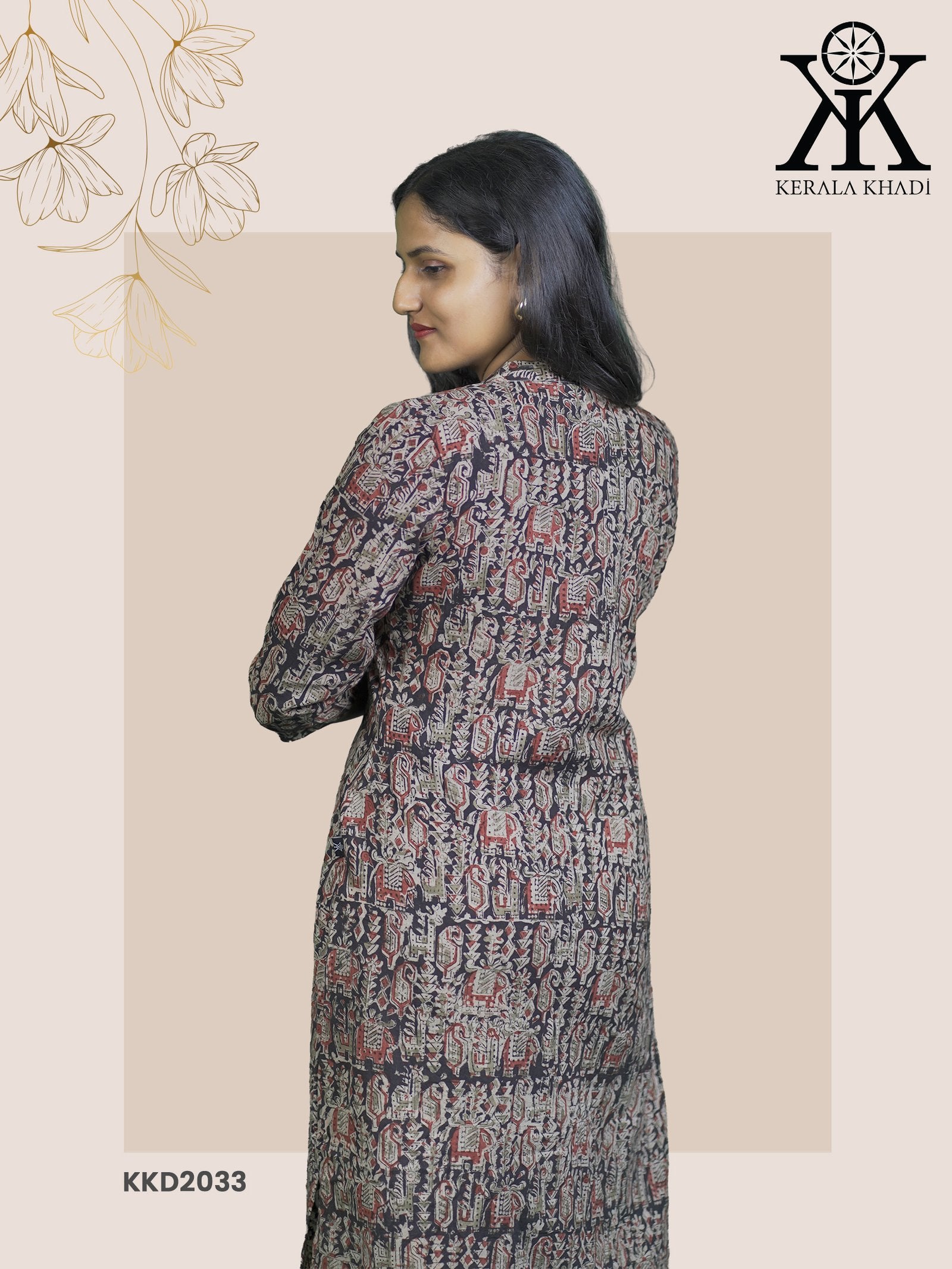 KKD2033 - Kalamkari Button Top Geometrical Print Kurthi