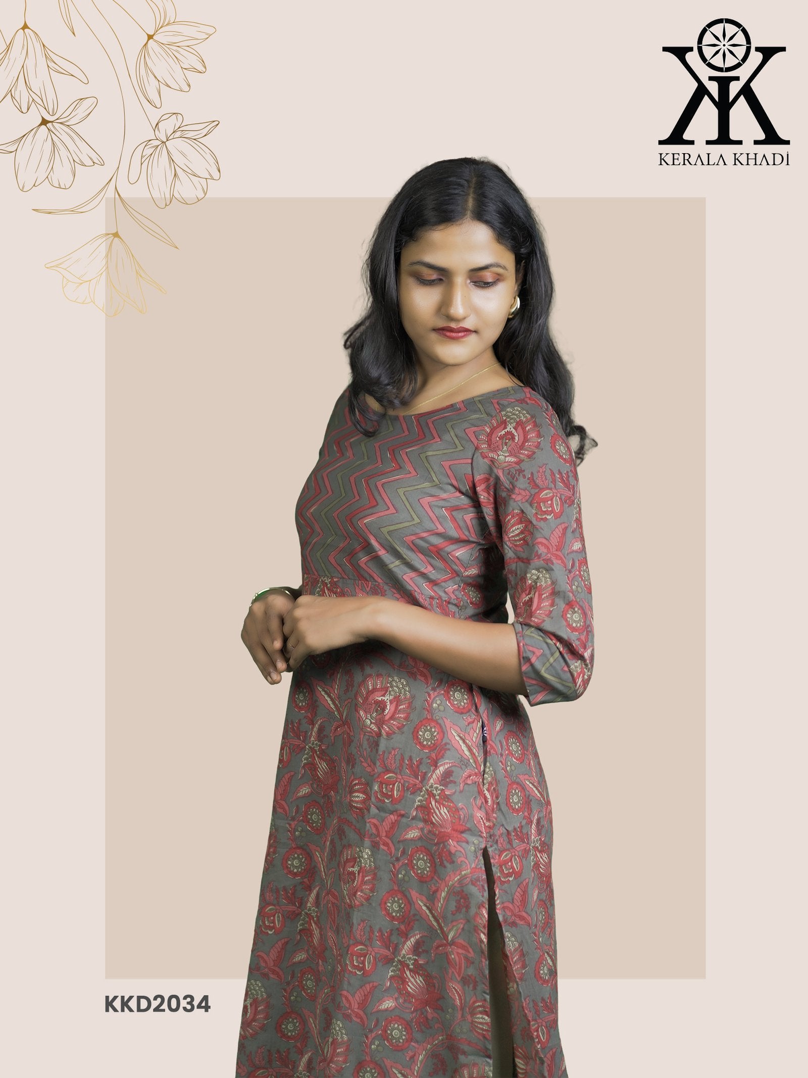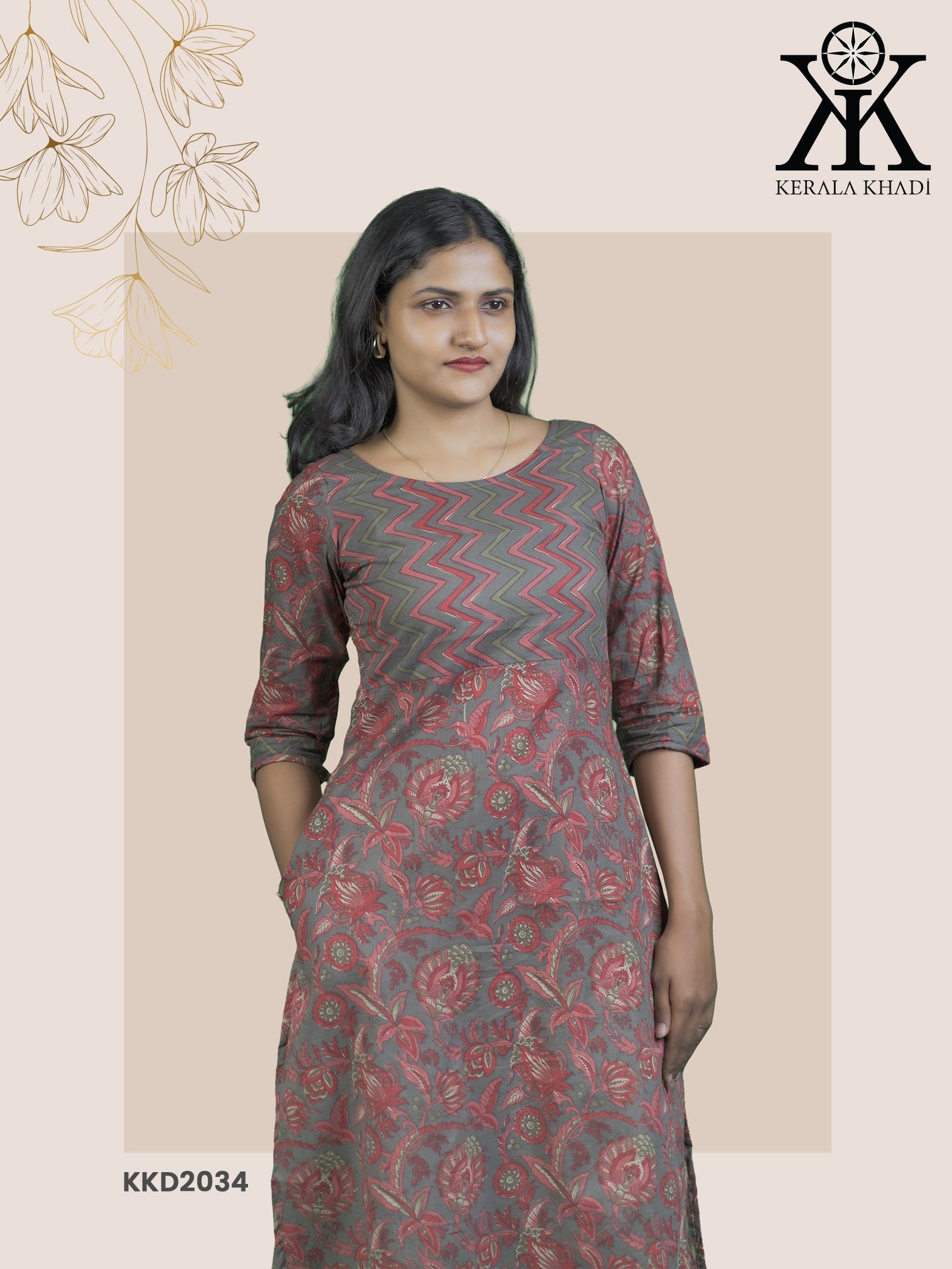 KKD2034 - Ajrak Print Zig Zag Yock Kurthi