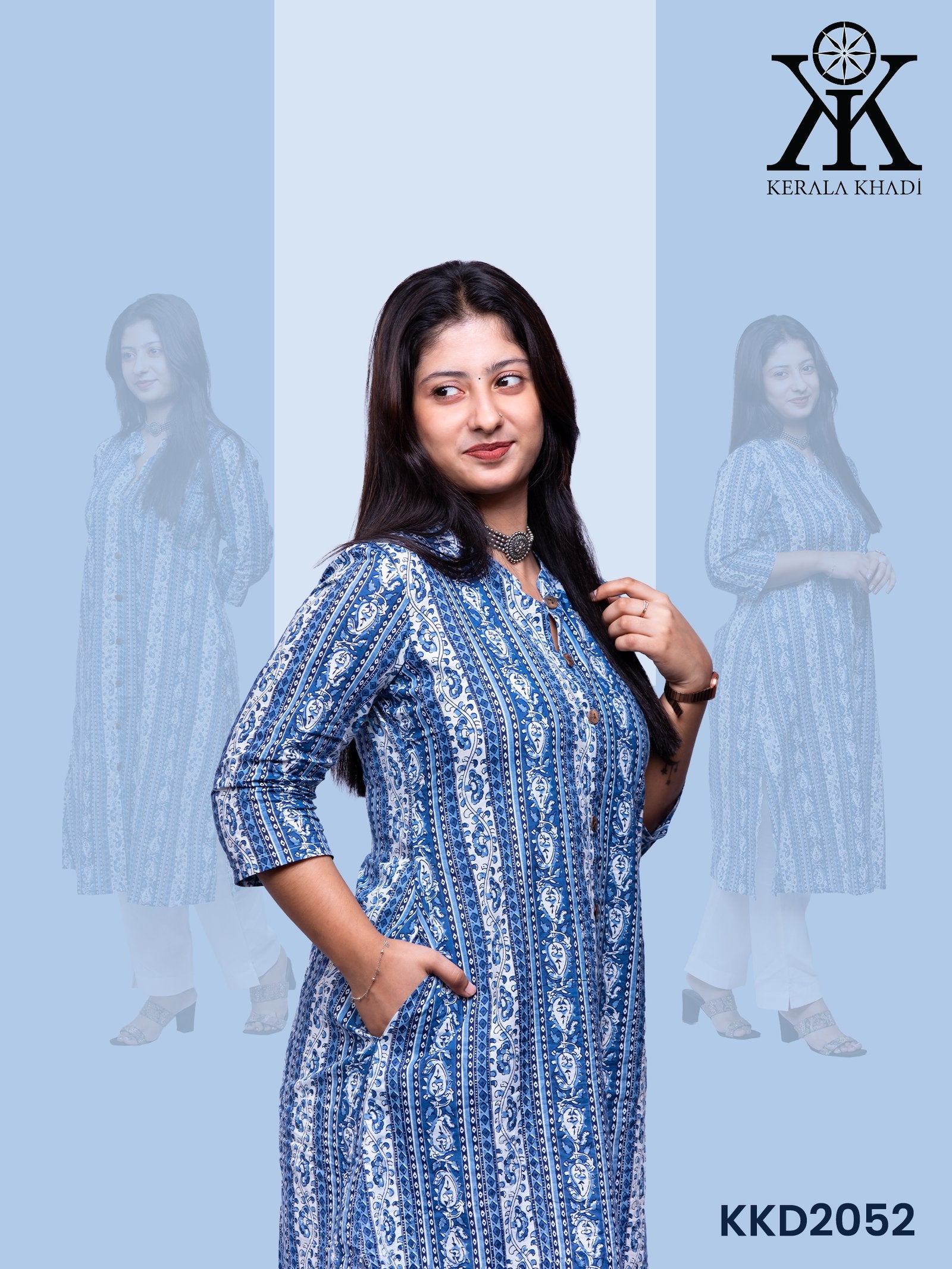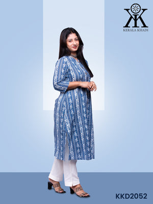 KKD2052 - Blue and white line print Top Kurthi