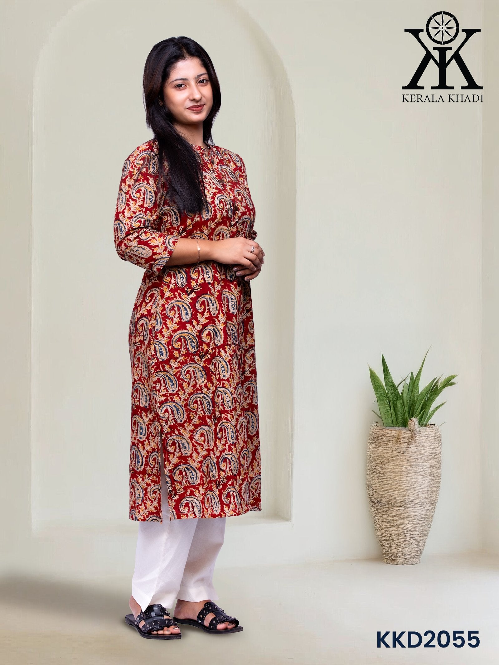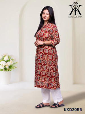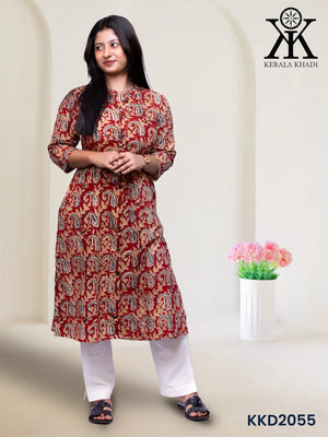 KKD2055 - Kalamkari maroon mango print Top Kurthi