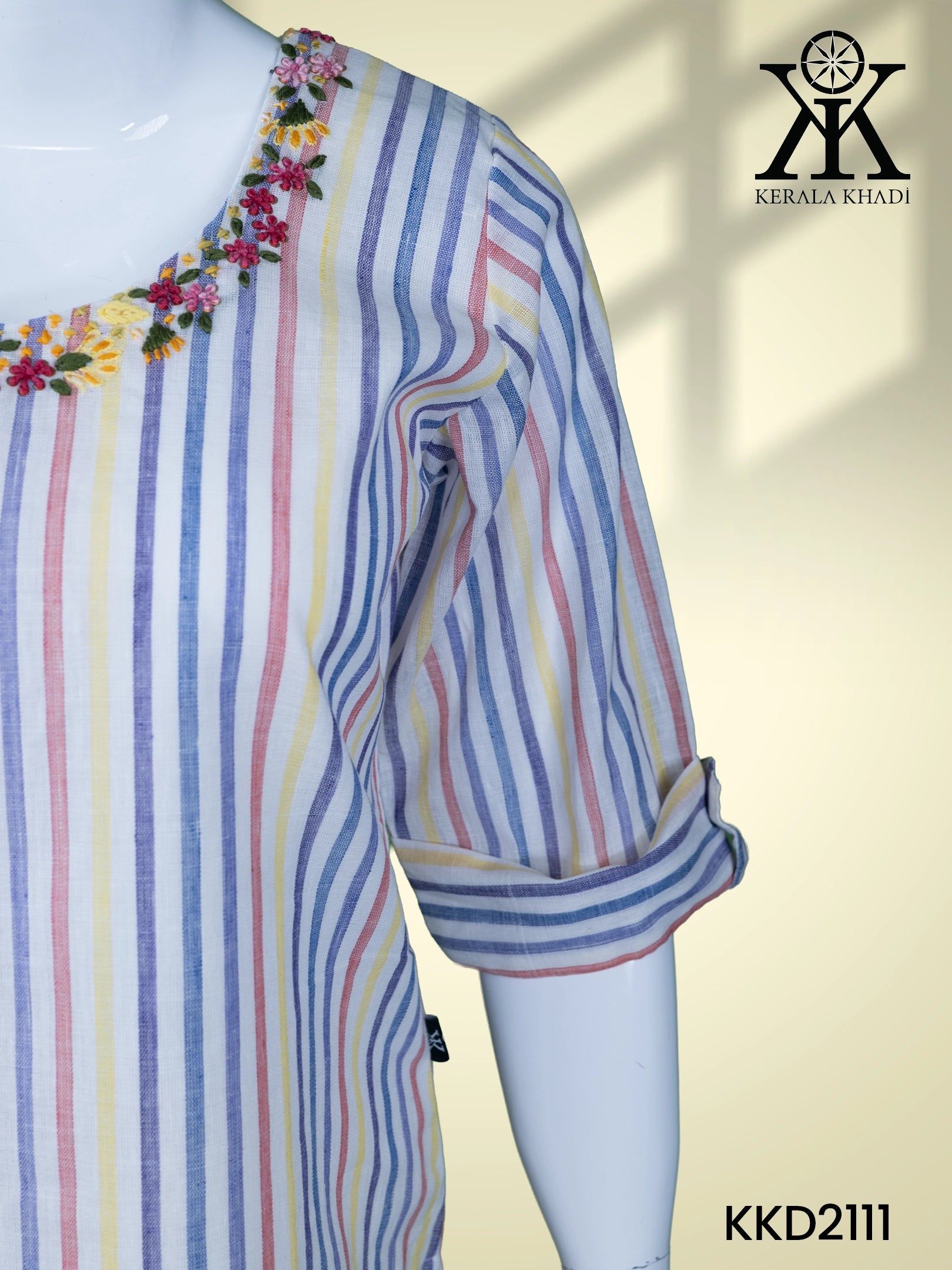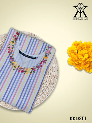 KKD2111 - Neck Hand Embroidery Sleeve Flap With Button – Multicolour Big Stripes
