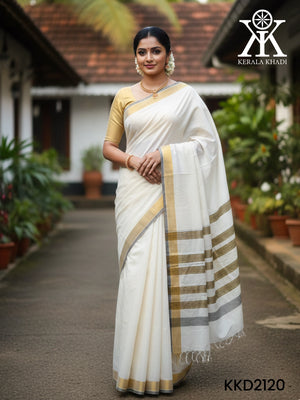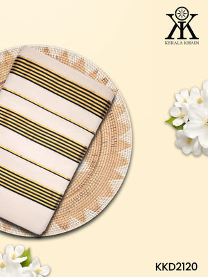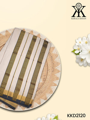 Product KKD2120 - Black and golden stripes set saree - https://keralakhadi.com/products/kkd2120